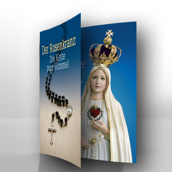 Briefkastenflyer als apostolisches Mittel: Vorstellung von Rosenkranz und Medaille mit Bestellschein für Interessierte.