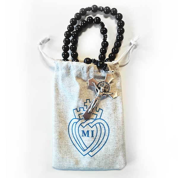 Robuster handgefertigter MI‑Rosenkranz mit Benediktus‑Medaille – ideal für treues tägliches Gebet.