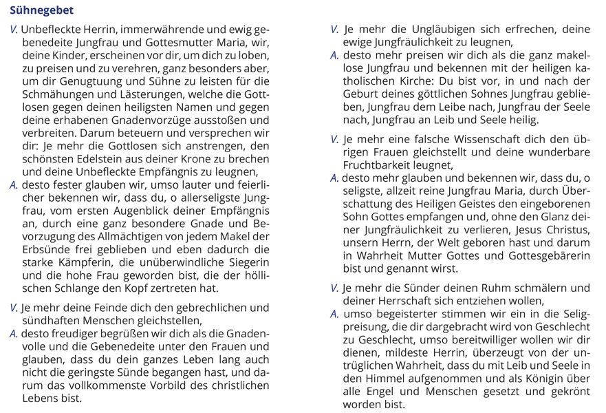 Sühnegebet zu Ehren der Unbefleckten Jungfrau