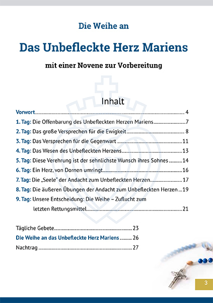 Das Ziel der in der Broschüre enthaltenen Novene ist es, auf die Weihe an das Unbefleckte Herz Mariens vorzubereiten: